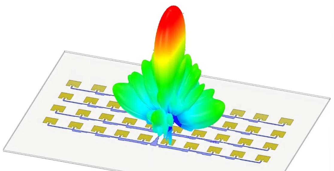 ① Princip interference a superpozice elektromagnetických vln: Anténní soustavy mohou vytvářet vyzařovací charakteristiky, které se liší od charakteristik konvenčních jednotlivých anténních jednotek. Jedním z hlavních důvodů je, že elektromagnetické vlny vyzařované více koherentními vyzařovacími jednotkami interferují a překrývají se v prostoru, přičemž některé oblasti vykazují zvýšené vyzařování a jiné snížené. To má za následek přerozdělení konstantní celkové vyzařovací energie v různých prostorových oblastech.